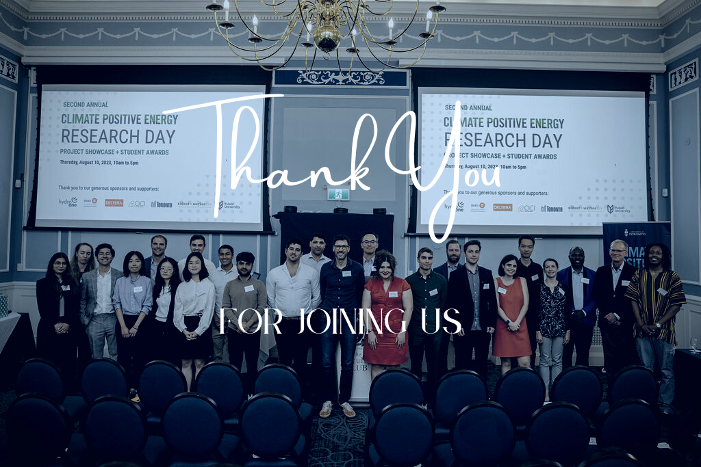 In the afternoon sessions, attendees were treated to multidisciplinary presentations from our 20 student researchers from more than a dozen different departments, who received graduate scholarships and summer research awards from Climate Positive Energy. These presentations were observed by a panel of judges who awarded prizes, consisting of cash and IP consultation services by Toronto-based law firm Ridout and Maybee, to researchers who demonstrated exceptional capabilities to advance CPE research themes.